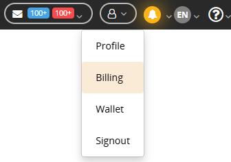 Click your username in the upper right corner of the system, and then select "Billing" from the drop-down menu.